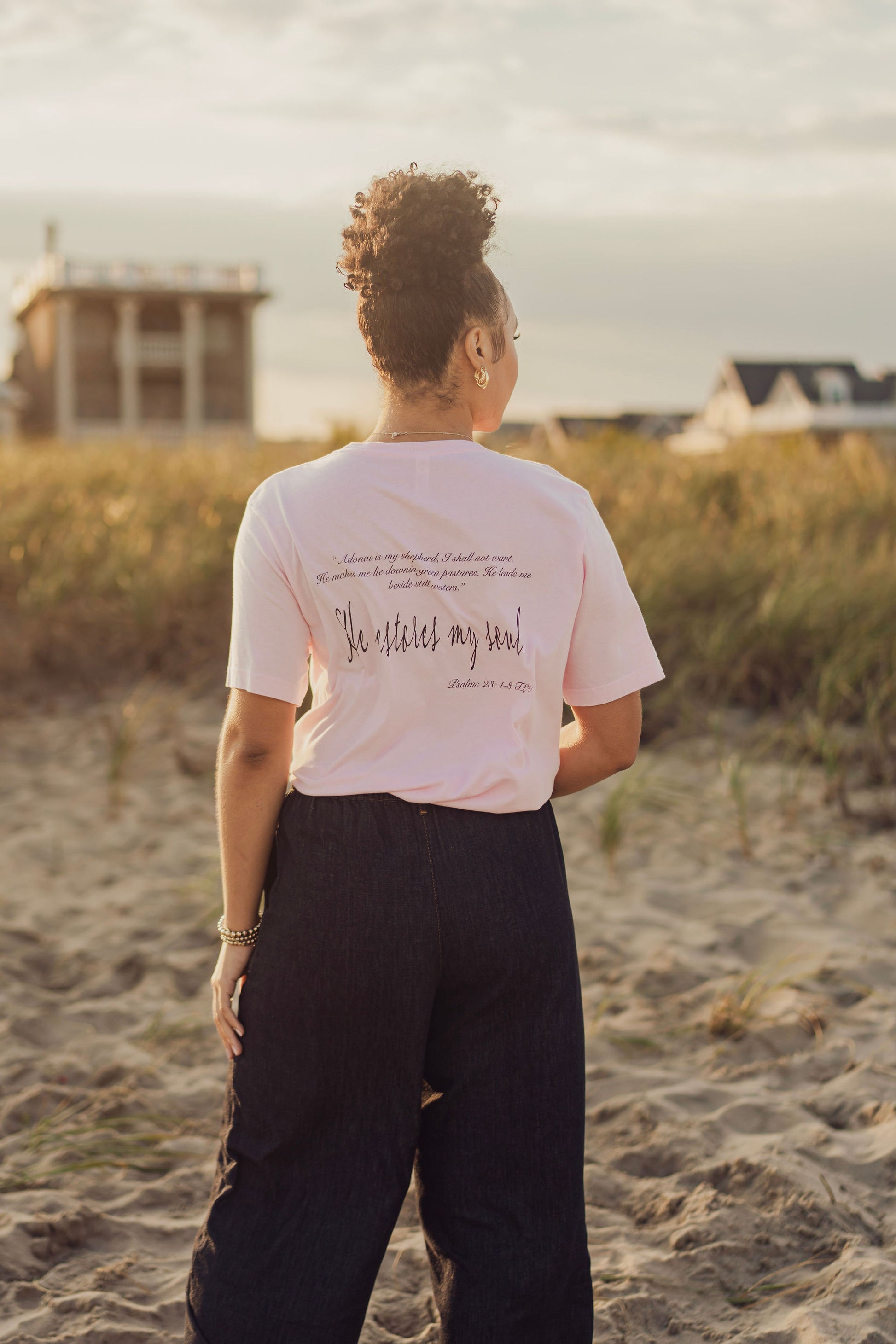 Esta camiseta alentadora y cómoda es una hermosa manera de compartir con el mundo lo que Adonai ha hecho por ti. Con el inspirador mensaje del Salmo 91 , te recuerda que Dios restaura tu alma y te da poder para vivir sus promesas.